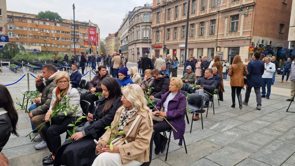 Komemoracija Halidu Bešliću počela je u 11 sati, a na Pozorišnom trgu Susan Sontag postavljeni su LED ekrani putem kojih građani prate komemoraciju i sa suzama u očima slušaju emotivne govore. Posebno je bilo emotivno na početku, kada su se na bini obratila unika Halida Bešlića Lamija.