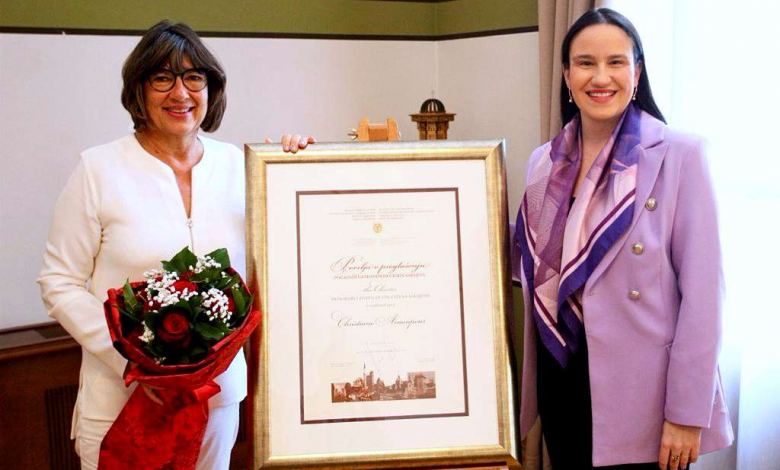 Gradonačelnica Sarajeva Benjamina Karića danas je učila plaketu za “Počasnog građanina Sarajeva” Christiane Amanpour, CNN-ovoj ratnoj reporterki.
