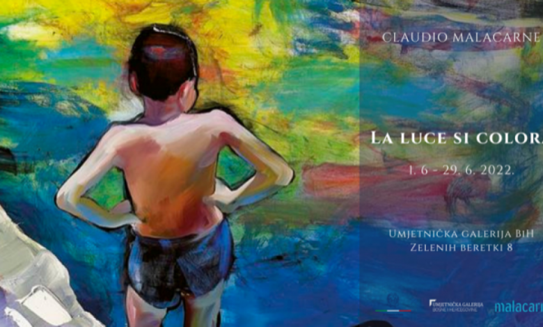 Izložba “La luce si colora” italijanskog umjetnika Klaudija Malakarnea (Claudio Malacarne) biti će otvorena 1. juna u Umjetničkoj galeriji Bosne i Hercegovine, u saradnji s Ambasadom Republike Italije u Sarajevu i u okviru proslave Dana Republike Italije.