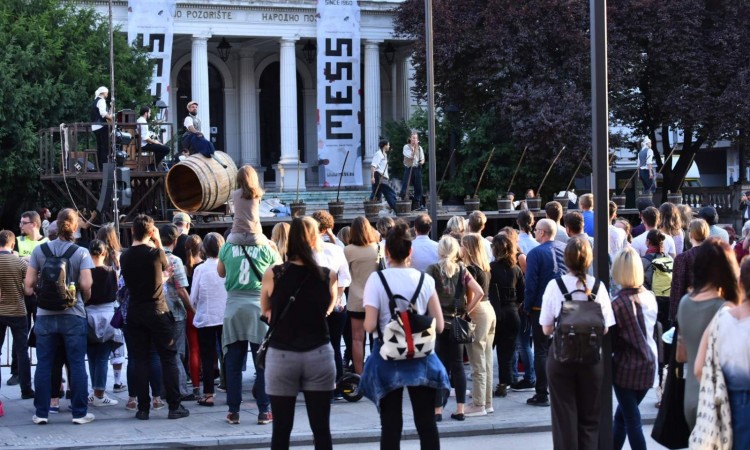 Ova atraktivna ambijentalna predstava i svojevrsni ulični spektakl u režiji Stefana Tea i produkciji italijanske trupe Teatro dei Venti iz Modene, izvedena na za ovu priliku posebno dizajniranoj pozornici ispred Narodnog pozorišta, pobudila je iznimno interesovanje publike.