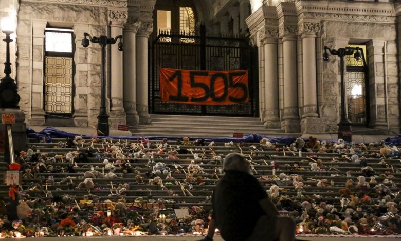 Ispred zgrade Parlamenta Britanske Kolumbije postavljen je i transparent s natpisom “1505”, što predstavlja broj djece čiji posmrtni ostaci su otkriveni u neoznačenim grobovima.