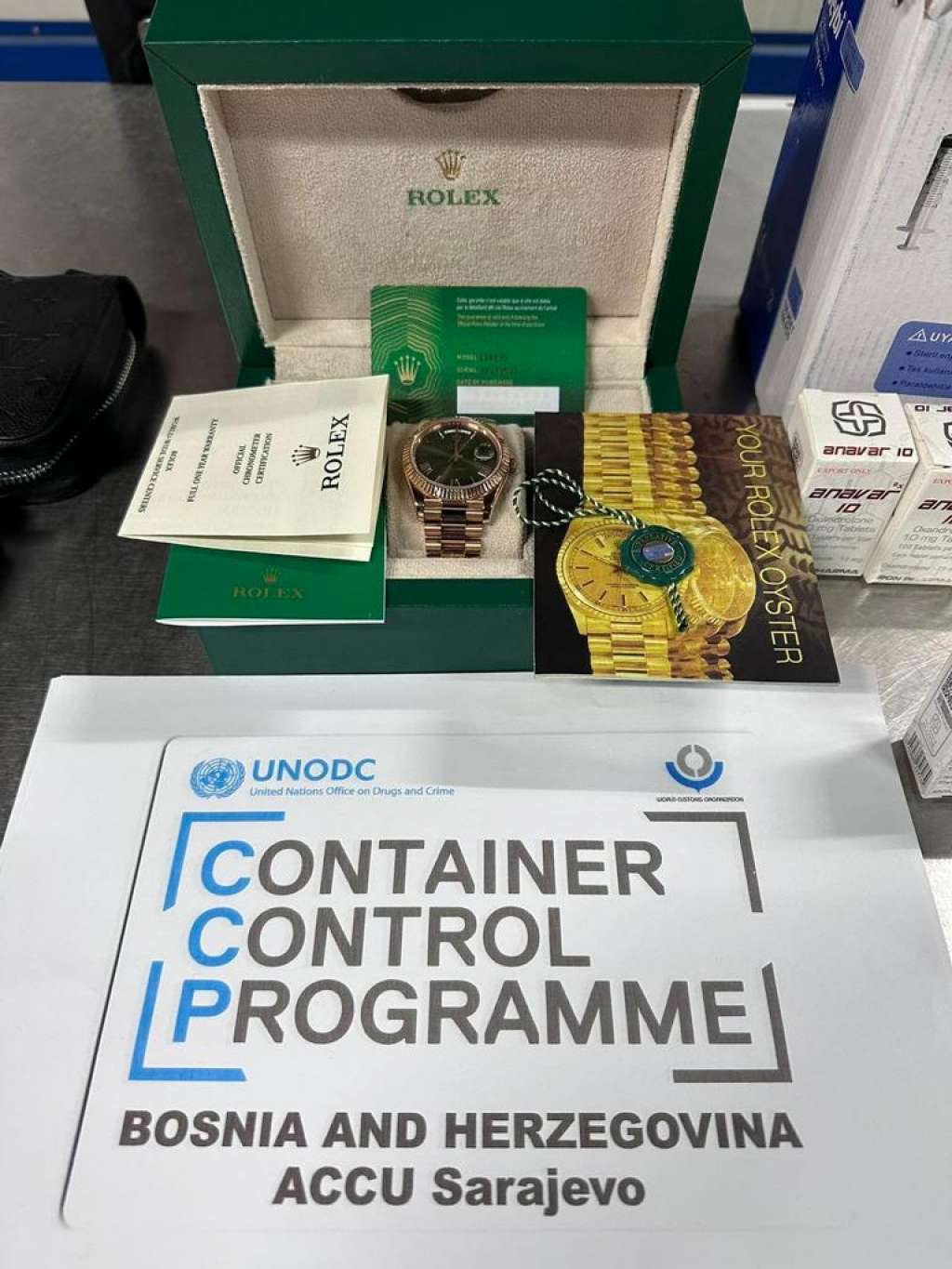 Vršeći pojačane kontrole putnika koji su stigli na Međunarodni aerodrom Sarajevo ovlaštena službena osoba Uprave za indirektno oporezivanje uspješno je spriječila pokušaj nelegalnog unosa skupocjenog sata marke Rolex, brendiranih torbica, cigareta i velike količine nedozvoljenih medicinskih sredstava, steroida i anabolika.