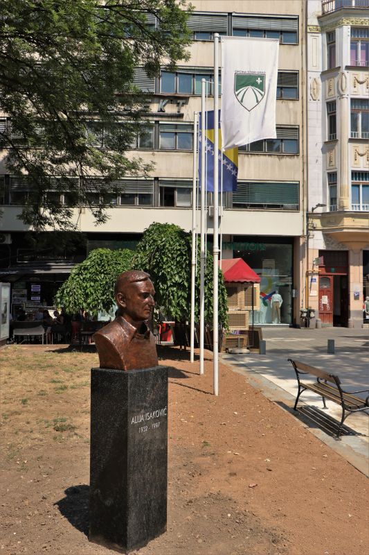 Trg oslobođenja-Alija Izetbegović od danas krasi bista još jednog velikana bosanskohercegovačke književnosti – utemeljitelja moderne bosanske jezičke kulture i jednog od najznačajnijih bošnjačkih intelektualaca Alije Isakovića.