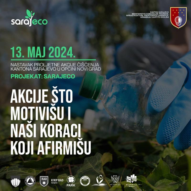 Ministarstvo komunalne privrede, infrastrukture, prostornog uređenja, građenja i zaštite okoliša Kantona Sarajevo obavještava javnost da će u ponedjeljak, 13. maja 2024. godine u Novom Gradu uslijediti nastavak proljetne akcije čišćenja Kantona Sarajevo – “Sarajeco“.