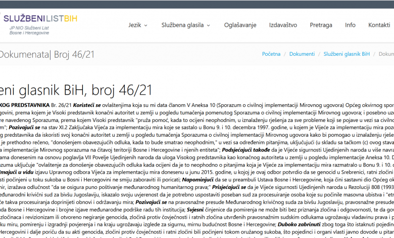 Podsjetimo, Valentin Inzko, odlazeći visoki predstavnik u BiH, 23. jula je objavio da je iskoristio bonske ovlasti i nametnuo dopune Krivičnog zakona kojima se zabranjuje negiranje genocida.