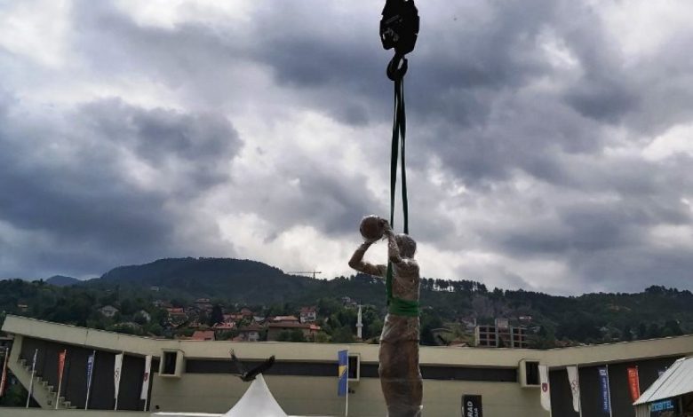 Svečano otkrivanje spomenika najboljem sportisti Bosne i Hercegovine Mirzi Delibašiću planirano je danas u 19 sati na platou Skenderija. Nakon vijesti o iznenadnoj smrti Segmedina Srna Bajramović, otkrivanje biste odgođeno je za sutra u istom terminu.