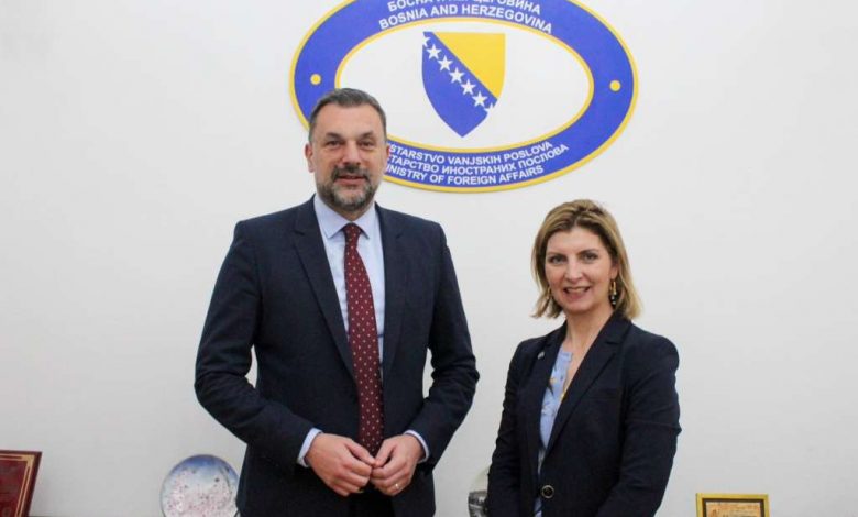 Ministar vanjskih poslova Bosne i Hercegovine Elmedin Konaković razgovarao je danas sa šeficom Misije IOM-a za Bosnu i Hercegovinu Laurom Lungarotti. Konaković je naglasio da se u BiH nakon usvajanja nove Strategije i Akcionog plana za migracije i azile te Zakona o strancima tokom prošle godine radi na daljem napretku u mnogim oblastima koje se odnose na upravljanje i koordinaciju migracija.