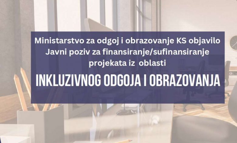 Ministarstvo za odgoj i obrazovanje Kantona Sarajevo objavilo je Javni poziv za podnošenje prijava udruženja i neprofitnih organizacija za dodjelu novca radi finansiranja/sufinansiranja programa/projekata/aktivnosti iz oblasti inkluzivnog odgoja i obrazovanja, saopćila je kantonalna pres-služba.