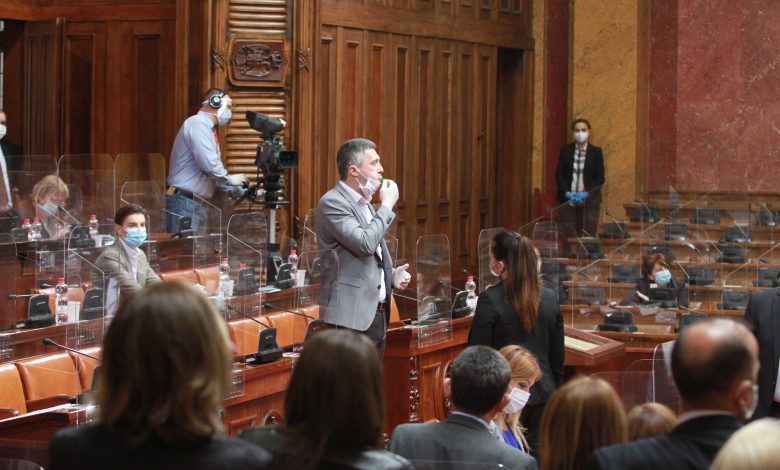 -Na početku sjednice, predstavnik opozicionog pokreta “Dveri” Boško Obradović zviždao je na pištaljku, zbog čega je nakon dvije opomene isključen sa sednice.