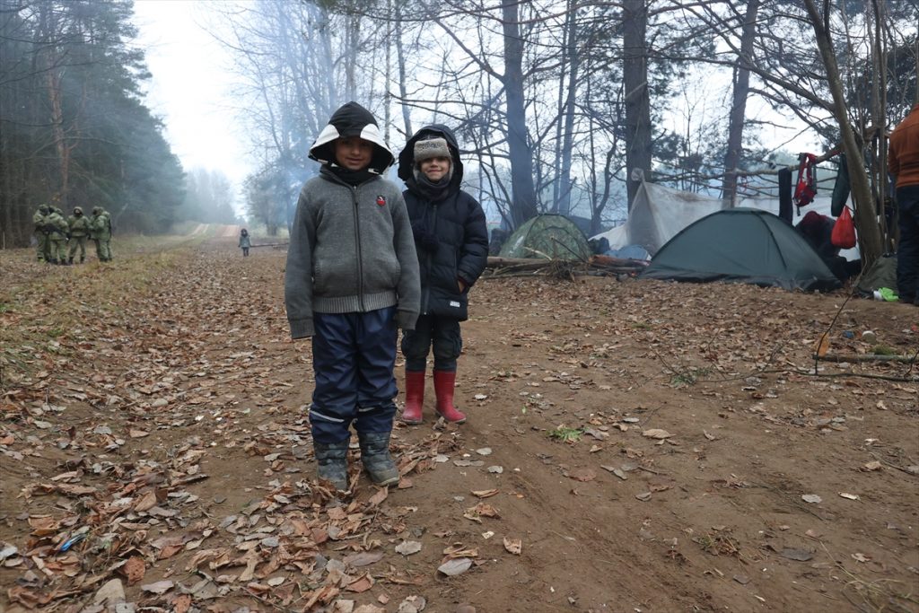 Migranti, većinom iz Iraka, dobijaju pomoć u hrani i vodi. Gotovo 2.000 migranata, među kojima ima mnogo žena i djece, boravi u šatorima koje su postavili ispred graničnih ograda u šumskom području.