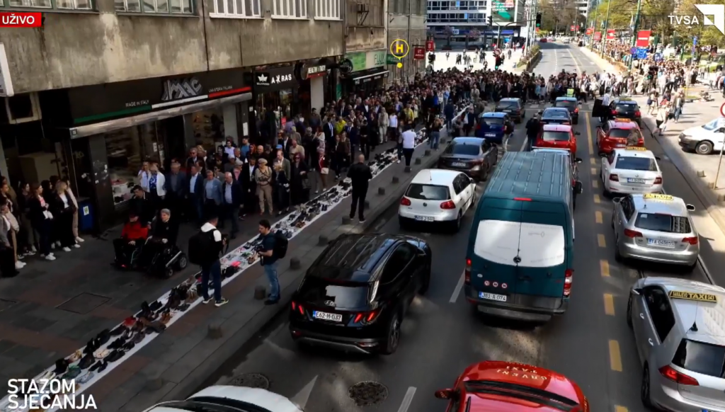 Kamere TVSA na više lokacija u gradu prenosile su uživo memorijalnu šetnju građana povodom petog aprila, dana početka najduže opsade u historiji modernog čovječanstva.