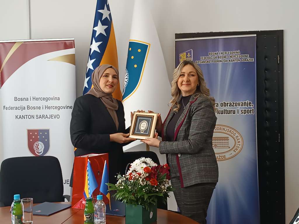 Ministrica odgoja i obrazovanja Kantona Sarajevo Naida Hota-Muminović i ministrica za obrazovanje, mlade, nauku, kulturu i sport Bosanskopodrinjskog kantona Goražde Adisa Alikadić-Herić potpisale su danas Ugovor o međusobnom priznavanju stečenih stručnih zvanja u oblasti predškolskog, osnovnog i srednjeg obrazovanja.