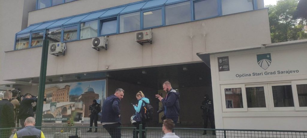 Novinar TVSA javlja da su upravo u toku hapšenja tri pomoćnika Ibrahima Hadžibajrića u zgradi općine Stari Grad.