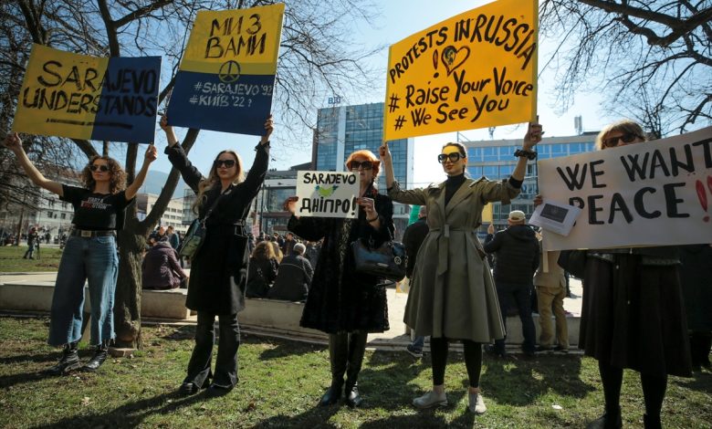 U Sarajevu, glavnom gradu Bosne i Hercegovine, u petak su održani protesti protiv napada Rusije na Ukrajinu.