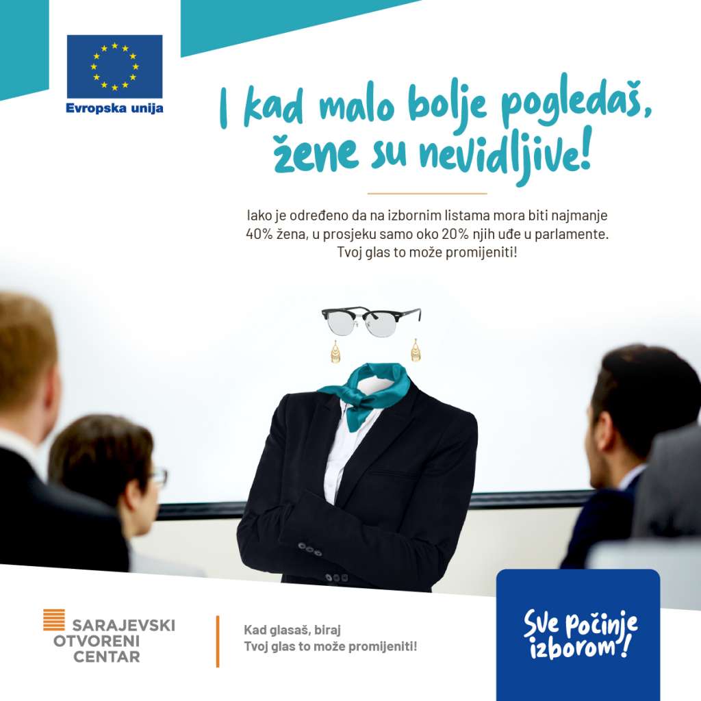 Sarajevski otvoreni centar (SOC), u saradnji sa Communisom uz podršku Evropske unije u Bosni i Hercegovini, provodi ‘I kad malo bolje pogledaš, žene su nevidljive’ – kampanju za jačanje političkog učešća žena u BiH.
