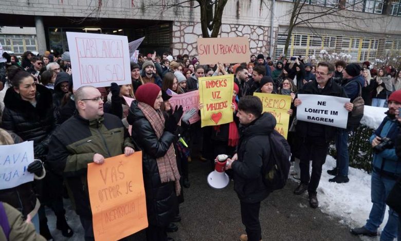 Oko stotinu sarajevskih studenata protestovalo je danas ispred Filozofskog fakulteta Univerziteta u Sarajevu u znak podrške studentima u Srbiji, koji protestuju zbog incidenta na željezničkoj stanici u Novom Sadu u kojem je život izgubilo 15 osoba.