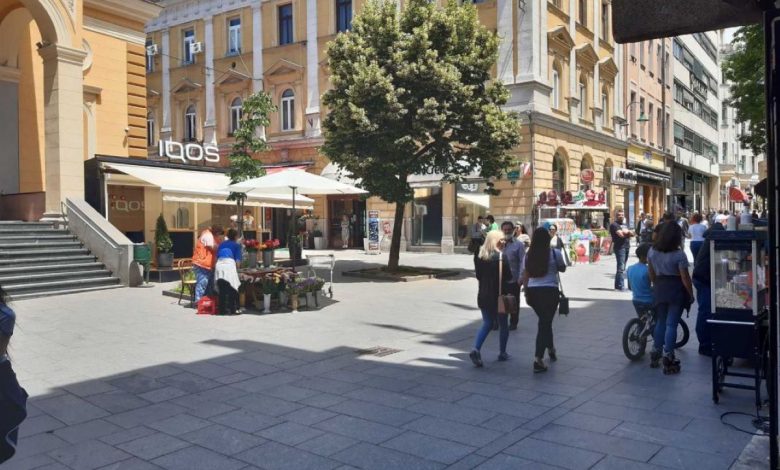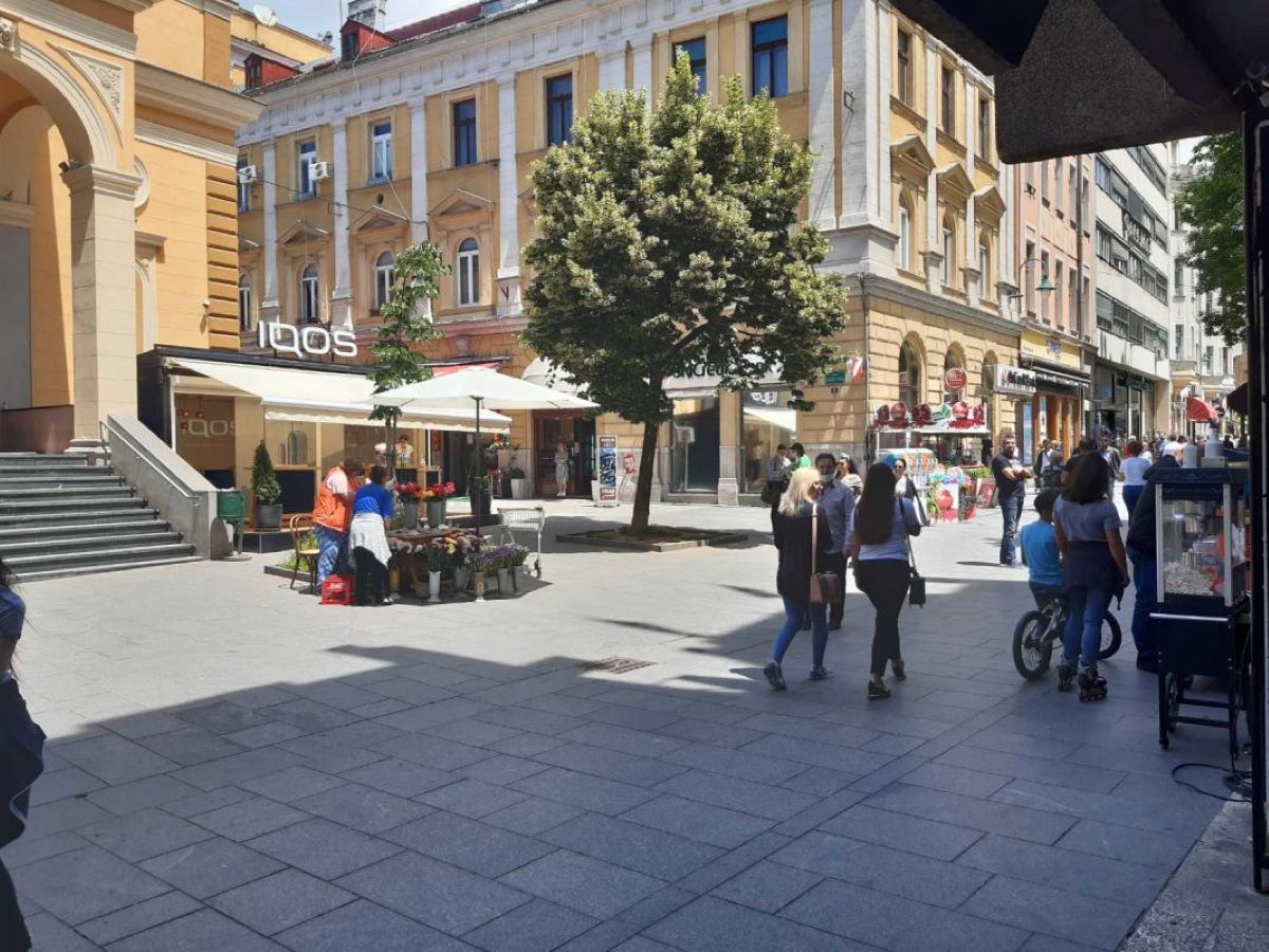 Na samoj granici dvije gradske općine, u dijelu ulice Ferhadija koji pripada Općini Centar, postavljeni su sadržaji potpuno neprimjereni za centralnu pješačku zonu jednog glavnog grada: aparat za cijeđenje soka, prodaja ulaznica, prodaja odjeće, kišobrana i drugo.