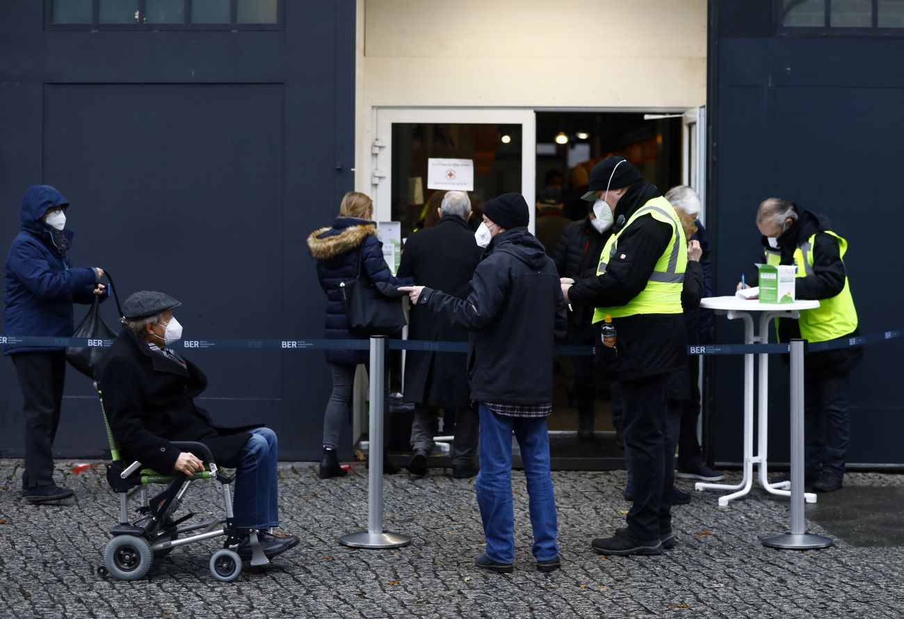 Ispred centra za vakcinisanje u Berlinu danas stariji građani, koji imaju prioritet u imunizaciji, čekaju u redu da prime vakcinu protiv koronavirusa, a kako se ne bi stvarale gužve oko centra i tako izbjeglo dalje širenje virusa, taksi vozači nude besplatan prevoz nakon vakcinacije.