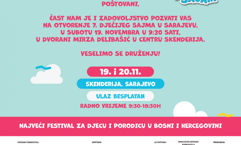 Sutra u 9:30h u Dvorani Mirza Delibašić počinje najveći festival za djecu i porodicu u Bosni i Hercegovini, “7. Dječiji sajam”.