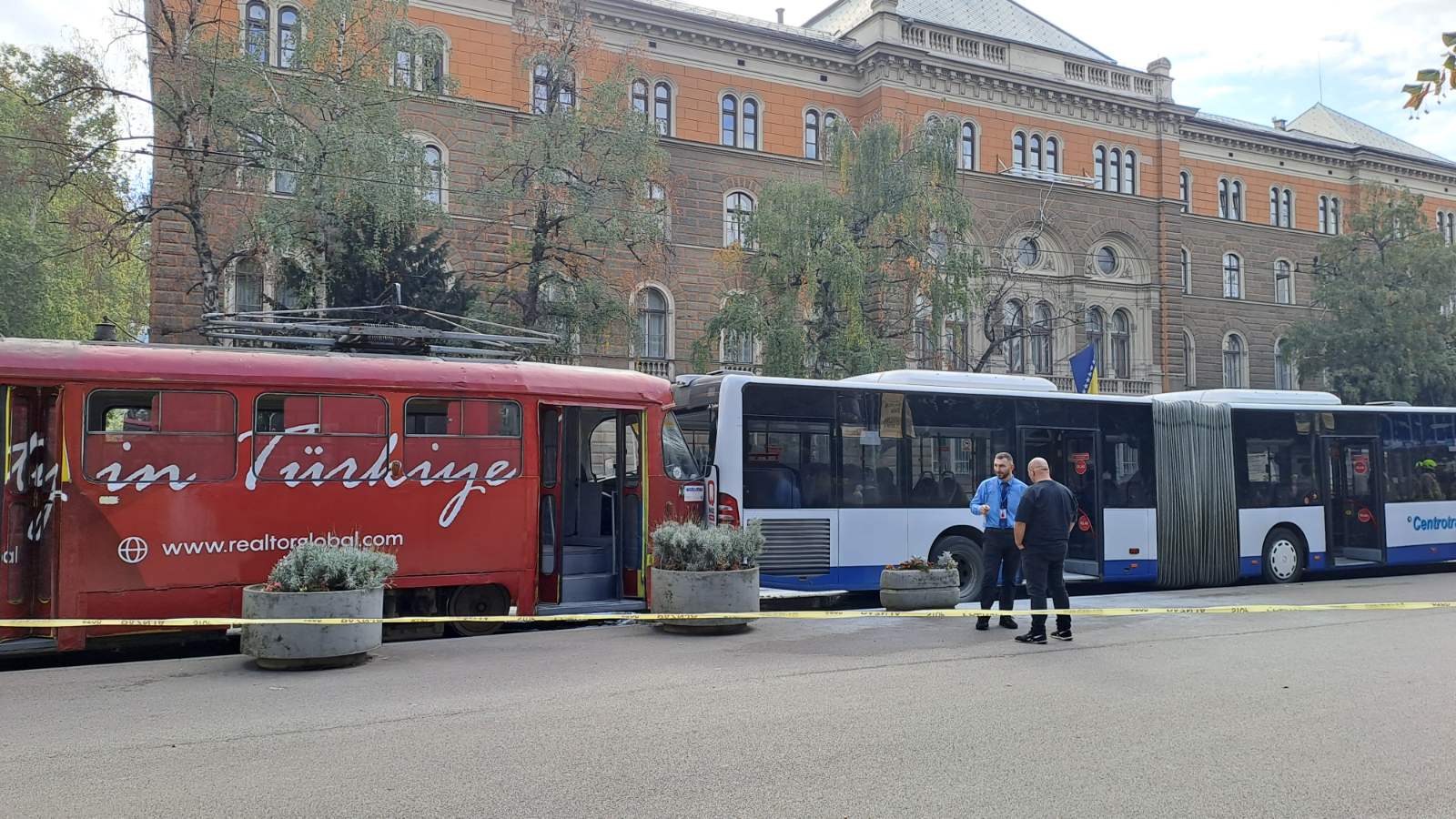 Na glavnoj gradskoj saobraćajnici u blizini zgrade Predsjedništva Bosne i Hercegovine došlo je do saobraćajne u kojoj su učestvovali autobus i tramvaj. Prema izjava očevidaca čini se da je tramvaj udario u autobus, stvorile su se velike gužve u saobraćaju, a tramvajski saobraćaj je obustavljen