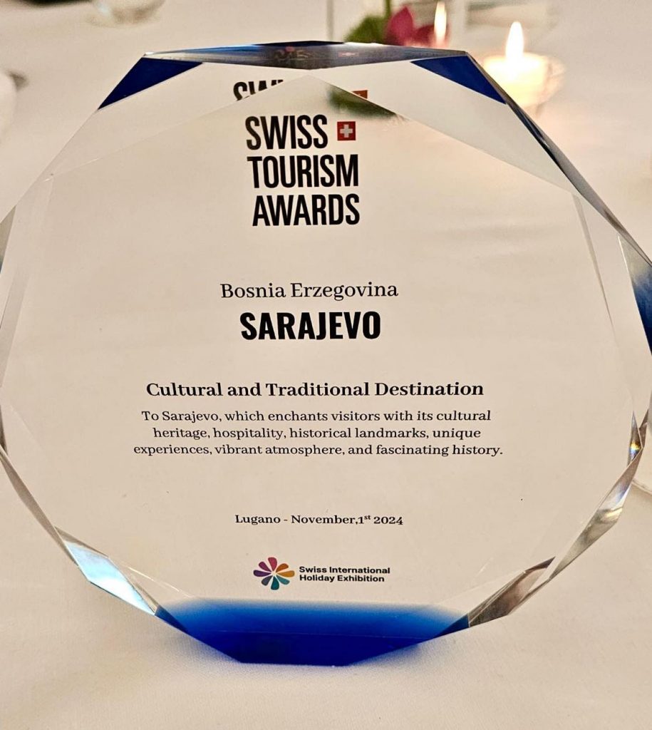Turistička zajednica Kantona Sarajevo dobitnik je nagrade Swiss Tourism Award, prestižnog međunarodnog priznanja koje se već 18 godina dodjeljuje u Švicarskoj za unapređenje izvrsnosti u različitim segmentima turističke industrije, saopćeno je iz TZ KS.