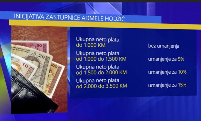 U skupštinsku proceduru upućena je incijativa za smanjenje plata u javnom sektoru Kantona Sarajevo. Ušteđeni novac bio bi usmjeren za pomoć privrednim aktivnostima u ovoj godini. Ne bi služio za tekuću budžetsku potrošnju. Ovoj inicijativi zastupnice Admele Hodžić protivi se Sindikat državnih službenika i namještenika. S druge strane, njihovo negodovanje, kritiziraju predstavnici realnog sektora.