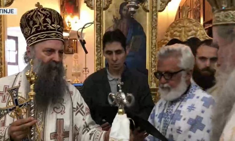 Mitropolit Joanikije i patrijarh Porfirije su jutros iz Podgorice do Cetinjskog manastira prebačeni helikopterom, uz jako policijsko obezbjeđenje. Njih su čuvali pripadnici antiterorističke jedinice policije s dugim cijevima.