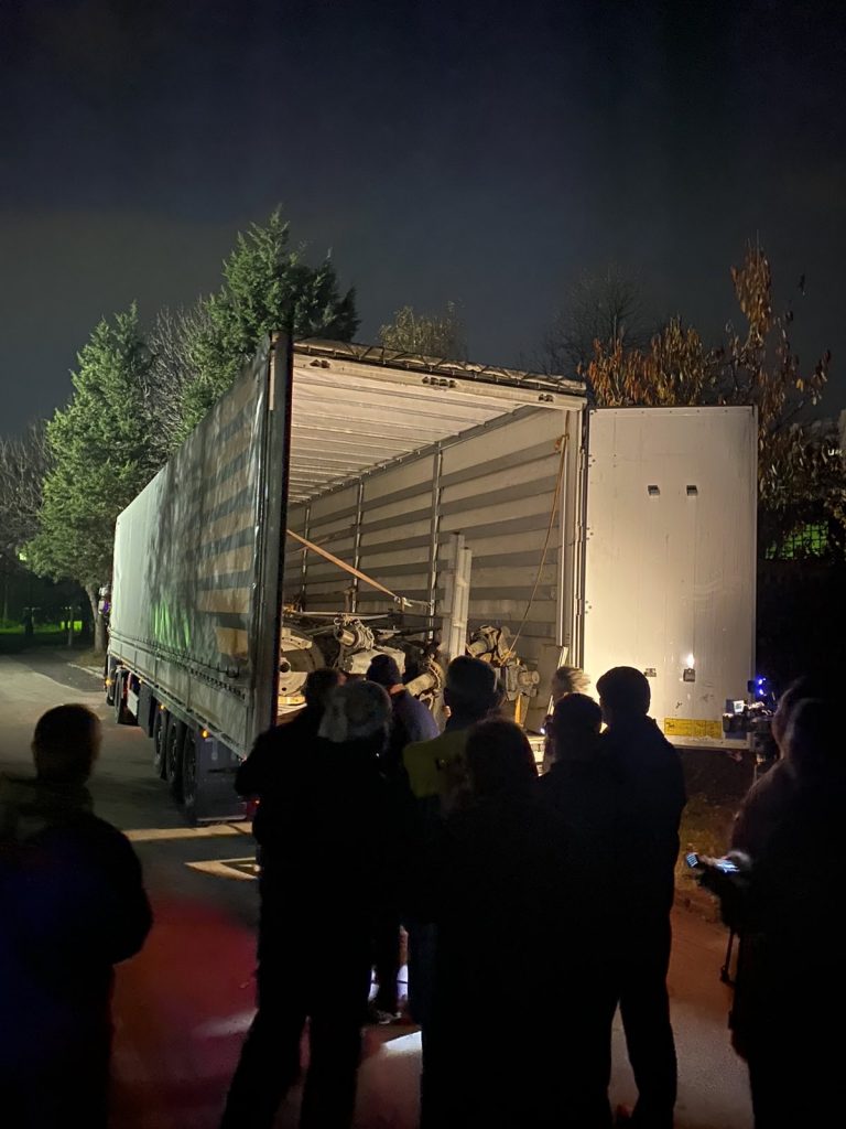 Reporterska ekipa TVSA javila se večeras iz kruga preduzeća Gras kada je stigao kamion iz Turske sa rezervnim dijelovima za tramvaje, u vrijednosti više od 200 000 KM.