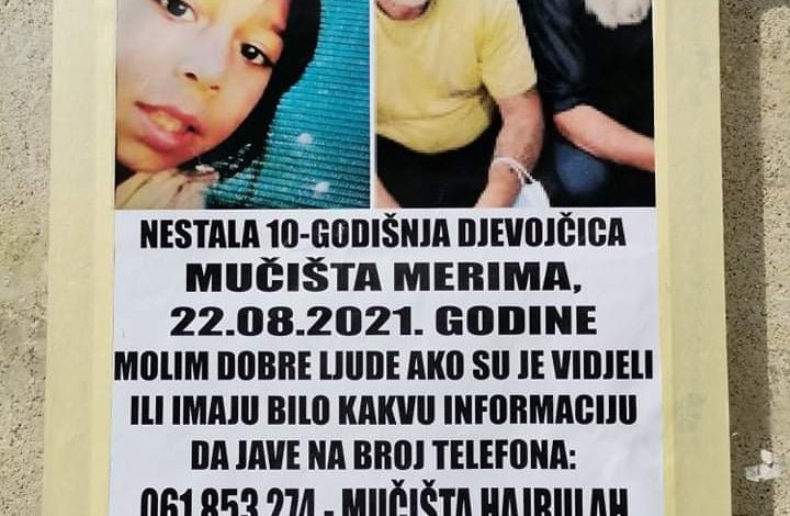 U Sarajevu se još uvijek traga za 10-godišnjom djevojčicom Merimom Mučista koja je nestala prije 11 dana, a porodica još uvijek nema nikakvih informacija o njoj. Nestanak je prijavljen policiji, ali ona još uvijek nije pronađena. Porodica moli sve građane koji vide djevojčicu da obavijeste policiju ili da pozovu porodicu na brojeve 061/853-274 ili 061/836-682