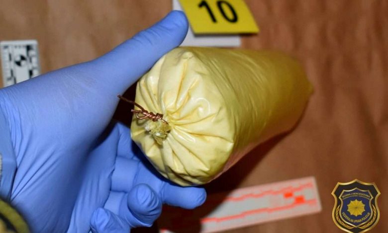 Prilikom policijskog pretresa, pronađeni su eksploziv, uređaj za daljinsko aktiviranje eksplozivne naprave, zaštitni prsluk, cijev pištolja i drugi predmeti koji se mogu dovesti u vezu s izvršenjem navedenih krivičnih djela.