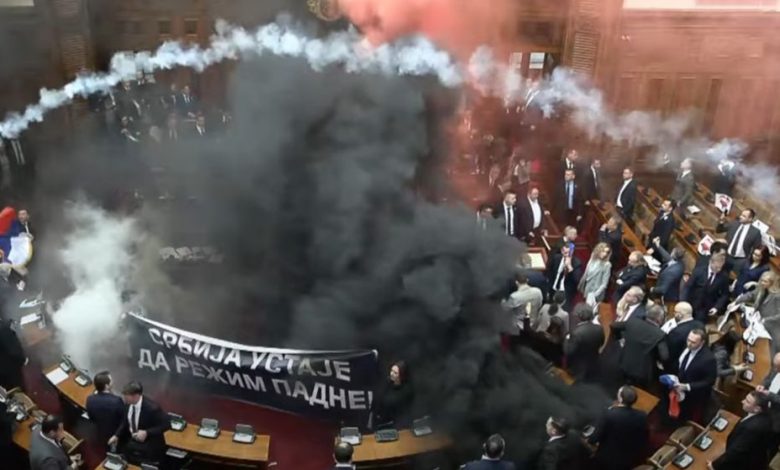 U Skupštini Srbije tučnjava, bačena i dimna bomba