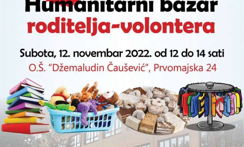 Roditelji-volonteri OŠ ‘Džemaludin Čaušević’ najavili su za subotu, 12. novembar, 14. humanitarni bazar. U ponudi će i ovaj put biti polovna, ali očuvana odjeća i obuća za odrasle i djecu, igračke, slikovnice, knjige, nakit, kolači, topli i hladni napici. Prilika je to da posjetioci po simboličnim cijenama kupe kvalitetne stvari, ali daju i doprinos u prikupljanju novca za potrebe učenika te škole.