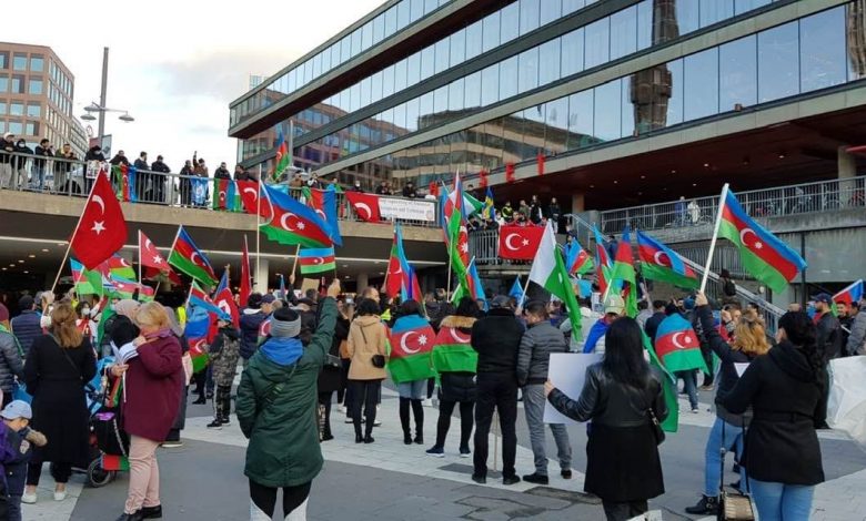 Azerbejdžanci koji žive u Švedskoj organizirali su proteste na trgu Segel, u Stockholmu, a u rukama su isticali zastave Azerbejdžana i Turske.