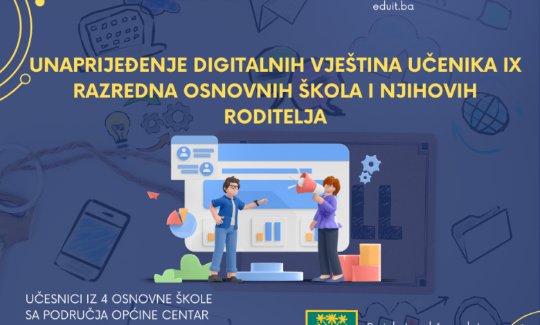 Udruženje nastavnika i profesora informatike (eduIT), uz finansijsku podršku Općine Centar, pokreće projekat unapređenja digitalnih vještina učenika devetih razreda osnovnih škola sa Centra, kao i njihovih roditelja.