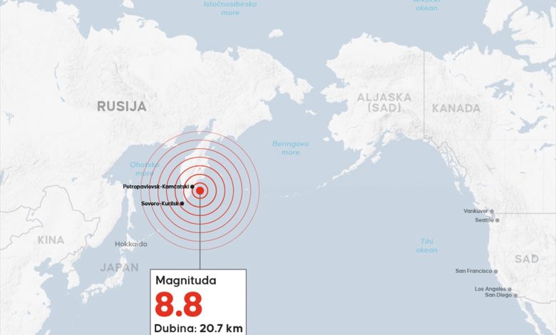 Zemljotres jačine 8,8 stepeni pogodio je u srijedu rusko poluostrvo Kamčatka, nakon čega su izdata upozorenja na cunami širom regije Tihog okeana, saopćio je Američki geološki zavod, javlja Anadolu.