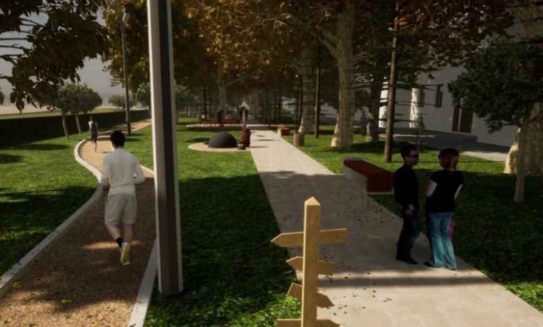 Multifunkcionalna pozornica/amfiteatar na otvorenom, trim staza sa teretanom za vježbanje, pješačke staze sa nekoliko posebnih, tematski uređenih površina i urbanim mobilijarom, te hortikulturno uređene zelene površine, sadržaji su koji su predviđeni glavnim projektom.